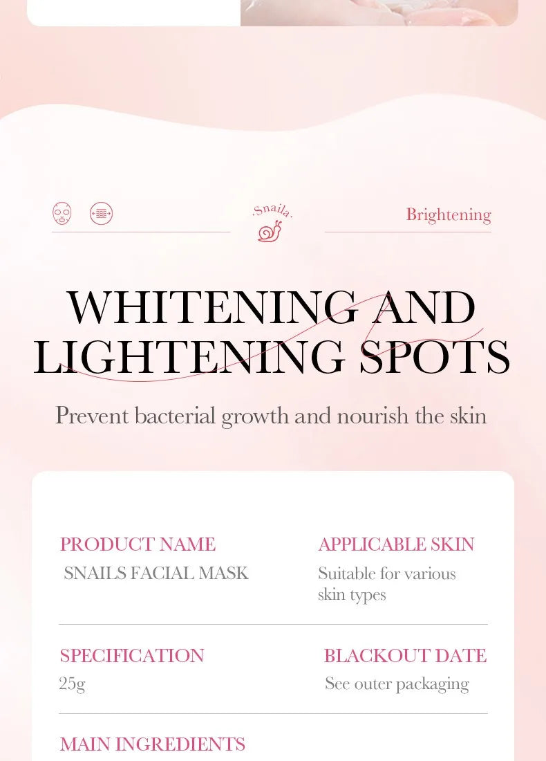 Pamper your skin with the luxurious Korean Snail Mucin Sheet Mask, a rejuvenating skincare essential that delivers intense hydration, repair, and radiance. Infused with premium snail mucin extract, each mask deeply nourishes your skin, helping to diminish fine lines, smooth texture, and restore a healthy, youthful glow.