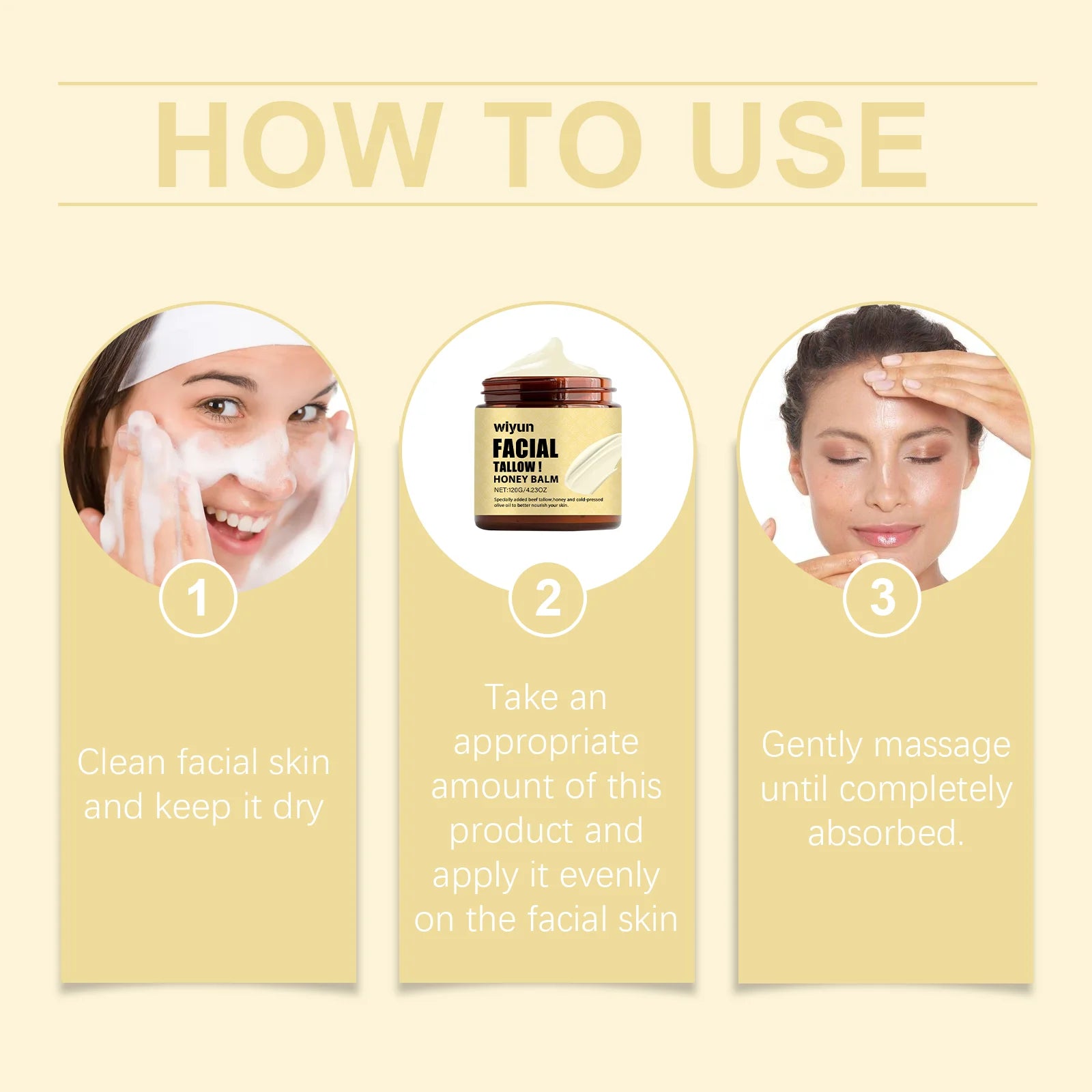 Enriched with natural beef tallow and honey extracts, this rich yet non-greasy cream melts effortlessly into the skin, restoring elasticity, improving tone, and leaving your complexion soft, plump, and radiant.